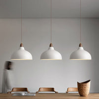 Elevate your interior with this refined Scandinavian pendant light that seamlessly blends natural wood and painted metal for a modern, minimalist aesthetic and timeless appeal.